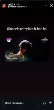 Digvijay Singh Rathee 's surprise entry in Bigg Boss 18 has left everyone super excited. Among others, Uorfi Javed is also happy to see SplitsVilla fame in Salman Khan's controversial reality show. Also Read: Ishaan Khatter ’s Birthday 2024: A Watchlist of Must-See Films from Cinema’s Global Rising Icon On Friday, Uorfi took to her Instagram stories and shared a promo of Digvijay's entry in the Bigg Boss 18 house. In the caption, she called him a winner and wrote, "Winner ki entry late hi hoti hai."