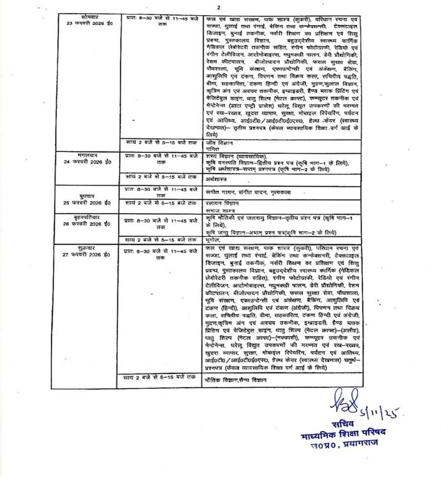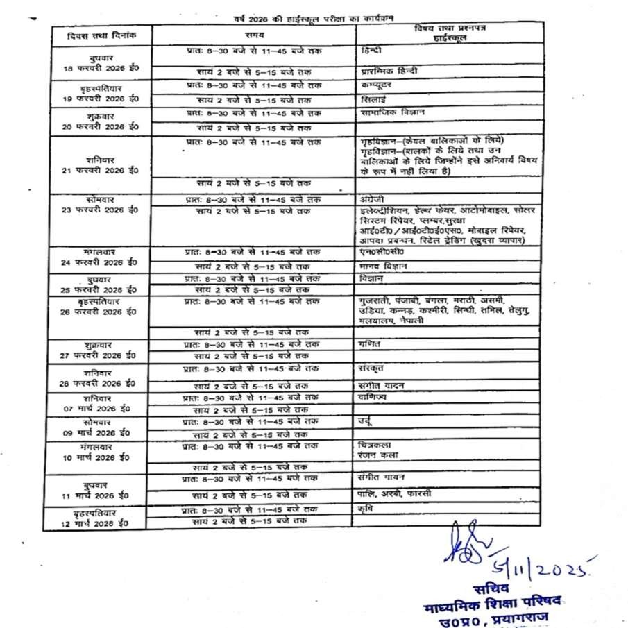 The Uttar Pradesh Board of Secondary Education has been released the schedule for the high school and intermediate exams date. These exams will be held from February 18, 2026, to March 12, 2026. This time, both the 10th and 12th exams will begin simultaneously.