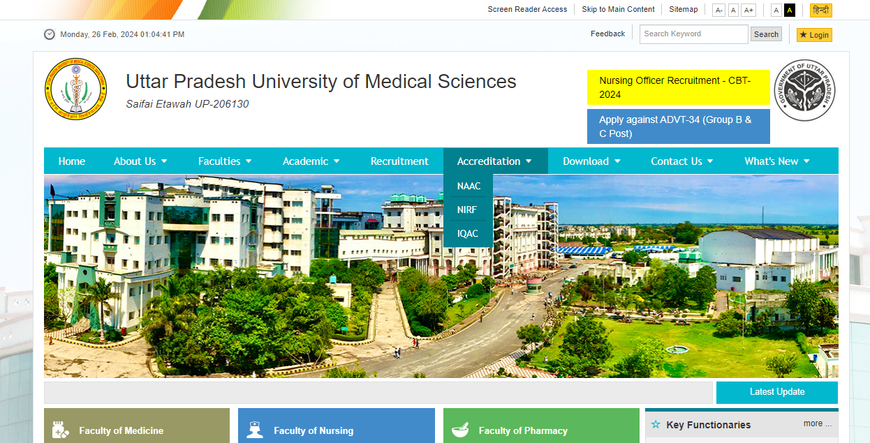 Uttar Pradesh University of Medical Sciences (UPUMS) has recently unveiled openings for the Nursing Officer role. This recruitment initiative seeks to occupy 535 positions, presenting a promising avenue for individuals aspiring to pursue a career in the medical domain. Prospective candidates are urged to utilize the online application portal available on the official website before the March 14 deadline. Let's explore the intricacies of this recruitment process and the eligibility criteria essential for potential applicants. 1) Vacancy Details: UPUMS is conducting this recruitment drive to fill a total of 535 vacancies for the position of Nursing Officer. These vacancies present a promising opportunity for individuals seeking employment in the medical sector. 2) Age Limit: Candidates applying for the UPUMS recruitment in 2024 must ensure that they fall within the age bracket of 18 to 40 years. It is essential to meet this age criterion to be eligible for consideration in the recruitment process. 3) Application Fee: As part of the application process, candidates are required to pay an application fee. For the Unreserved (UR) category and OBC/EWS candidates, the application fee is Rs. 2000. However, for SC/ST candidates, the application fee is Rs.1200. Applicants must adhere to the specified fee requirements to complete the application process.