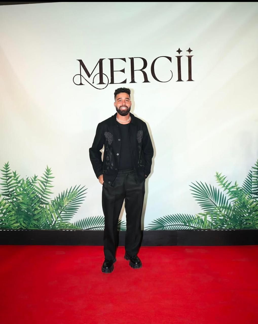 AP Dhillon looked striking as ever in a full black outfit featuring pants, a t-shirt, and a printed coat. He accessorized his outfit with a striking neckpiece, to add a layer to his look.