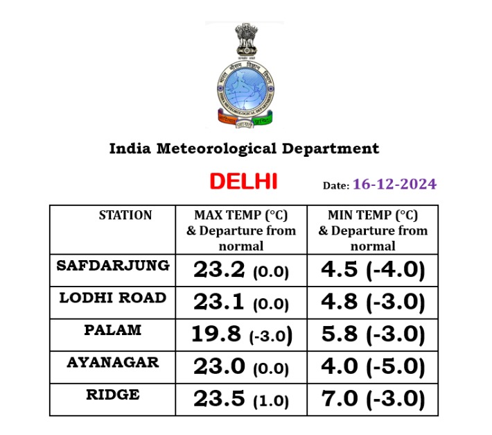 Weather Forecast: People were troubled by cold wave for the second consecutive day on Monday in many areas of Delhi. The mercury has fallen further in the last 24 hours. The minimum temperature in Safdarjung was recorded at 4.5 degrees Celsius. This is four degrees below normal. Due to snowfall in the mountains, the cold is continuously increasing in the plains. Earlier on December 12, a temperature of 4.5 degrees Celsius was recorded in the city.